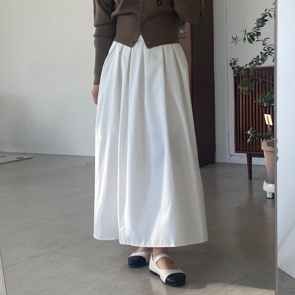 당일출고!(핏바로완성/러블리!!) A라인 뒷밴딩 옆지퍼 핀턱 하객룩 벚꽃룩 플리츠 벌룬 주름 플레어 봄신상 데이트룩 여리여리 하체커버 롱 스커트 봄신상