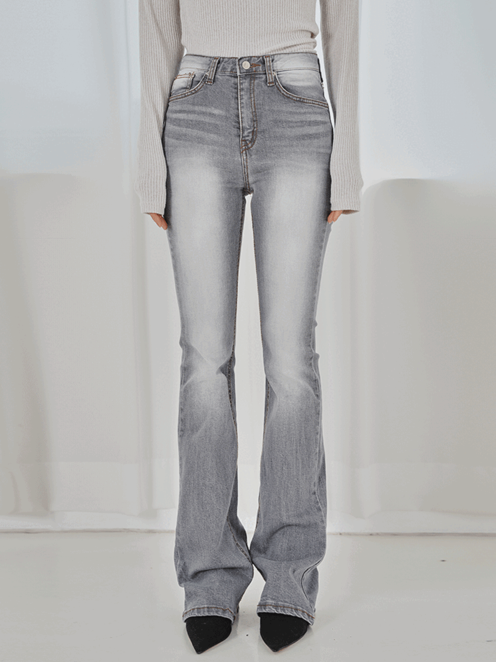 체르니 부츠컷 그레이 워싱 롱 데님 팬츠