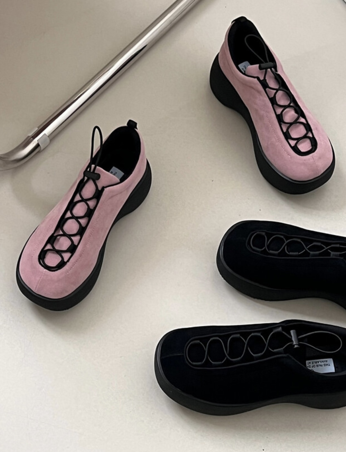 [당일/무료배송/최저가] 클라우드 유니크 핑크신발 통굽 벨벳 스니커즈 키높이신발 어글리슈즈 스트링운동화 (2 color)