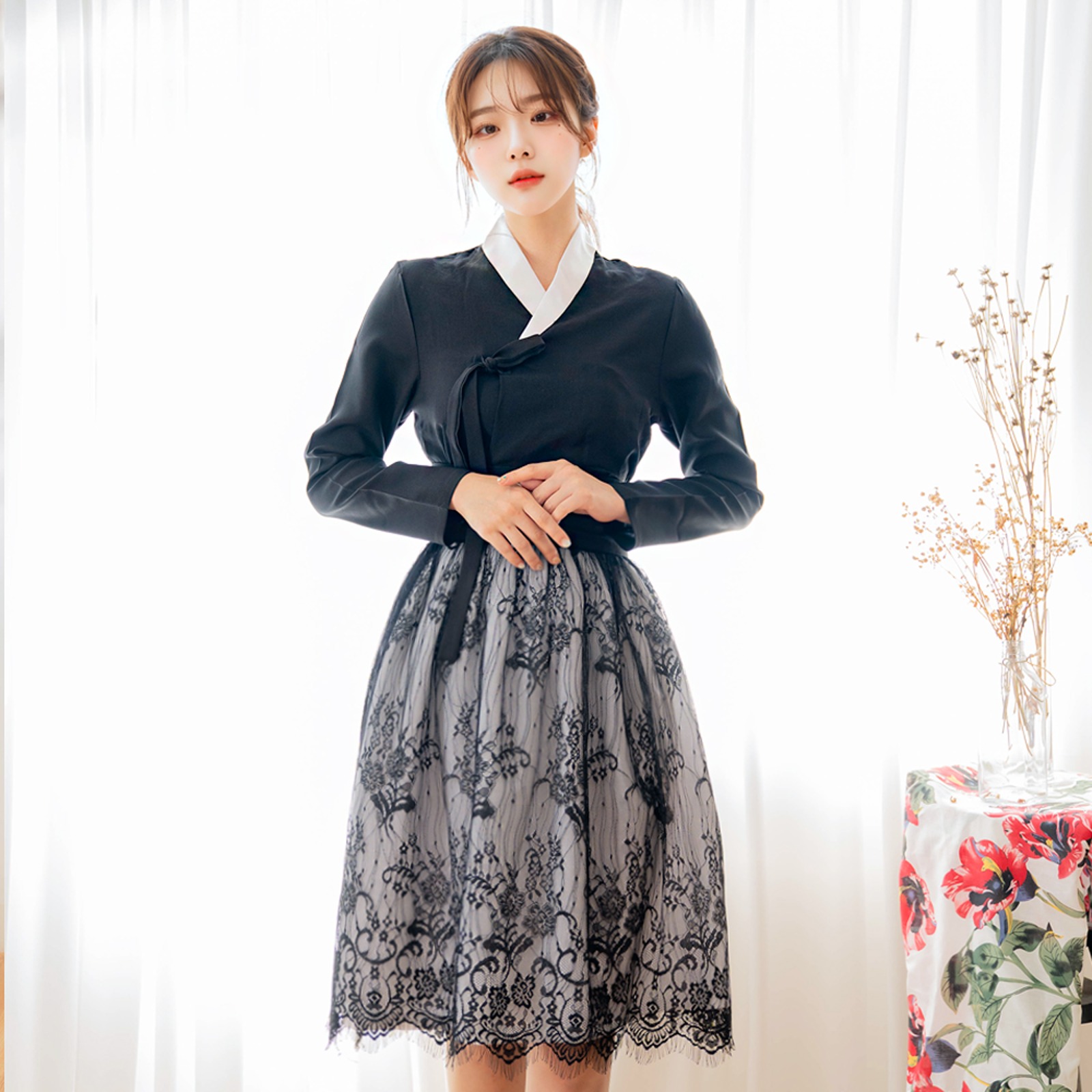 생활한복 세트 기품 저고리 소단 화이트 허리치마 늦잎 레이스 허리치마_192