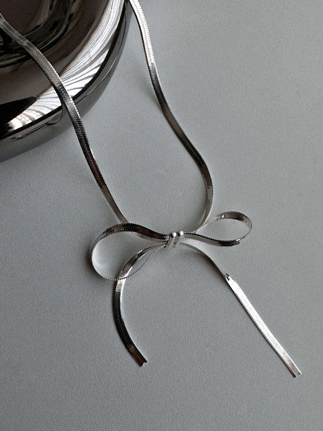 [무배] [silver 925] 뱀줄 리본 목걸이 여성스러운 펜던트 일체형 찰랑 유광 납작 뱀줄