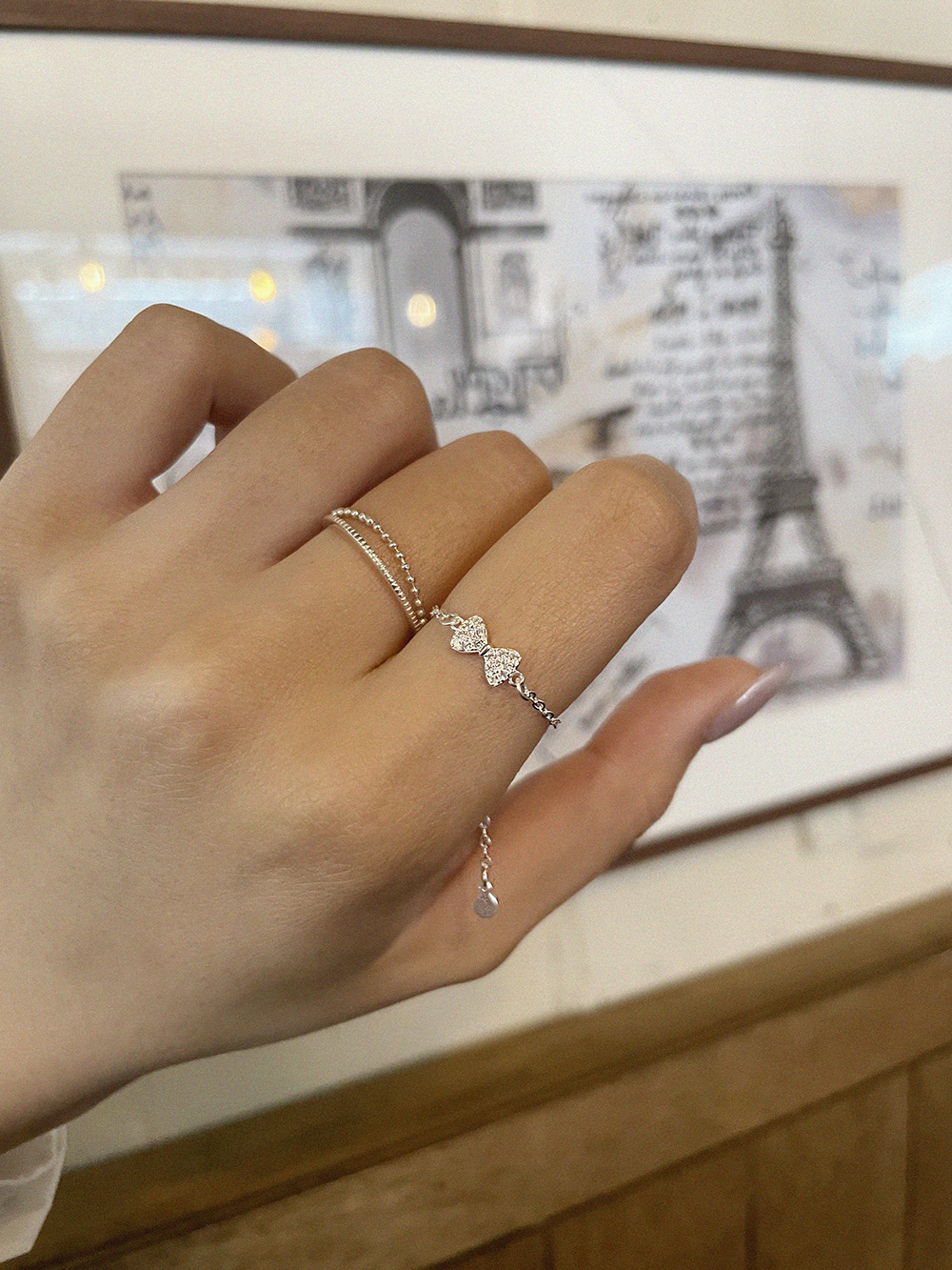 [당일] 실버 925 심플 큐빅 리본 체인 반지 프리사이즈링 레이어드링 오픈 실반지 링
