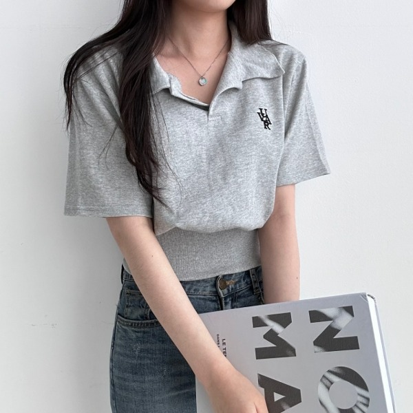 [꾸안꾸]허리 얇아지는핏, 팔뚝살 완벽커버 모던 카라 반팔 티셔츠 (3color)