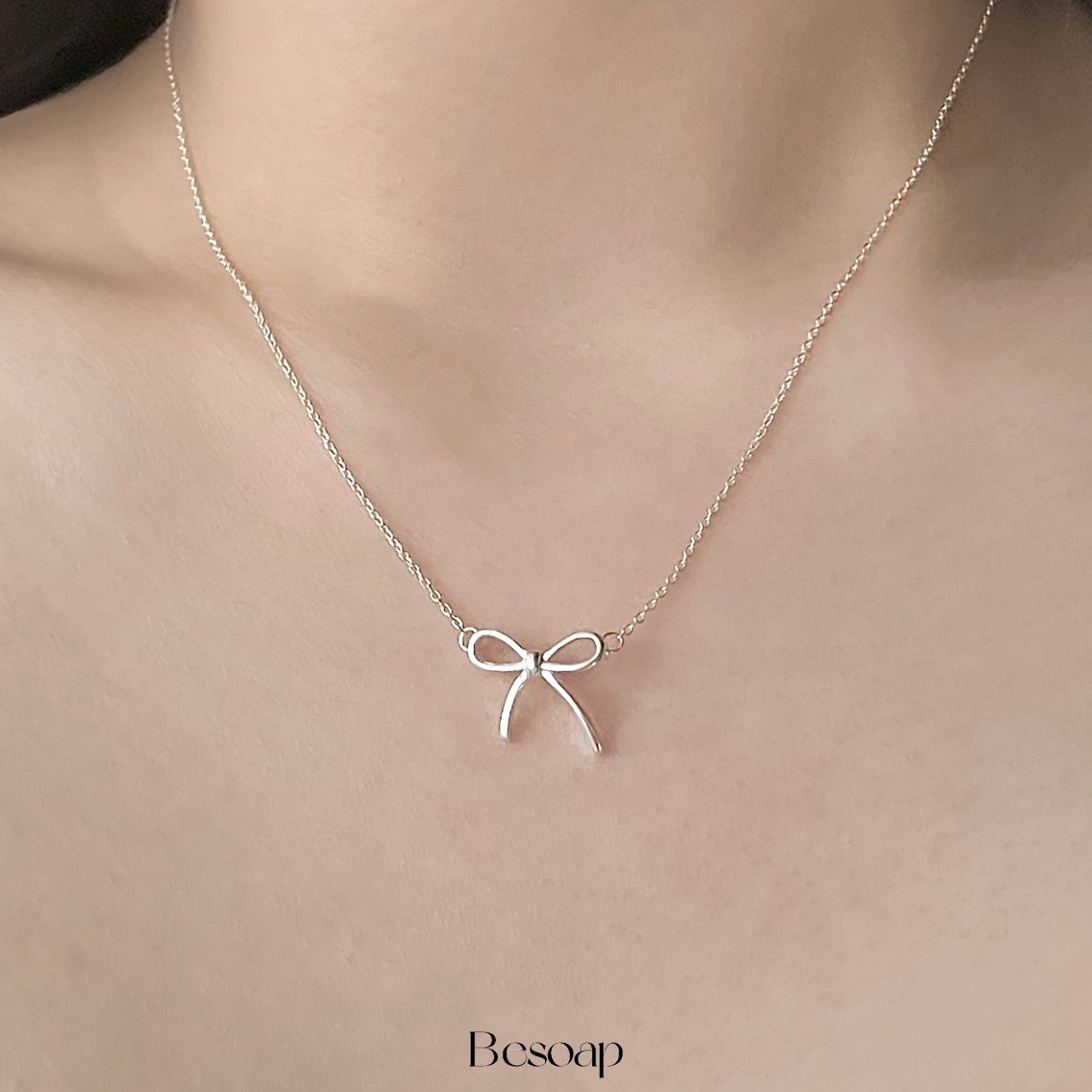 [당일발송][Silver925] Line ribbon necklace /실버 925 리본 러블리 심플 발레코어 순은 초커 목걸이