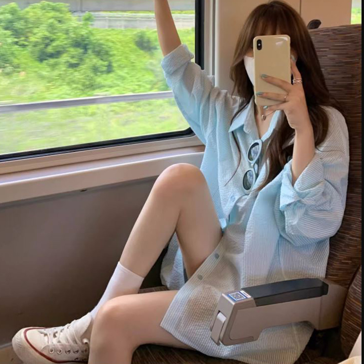 (당일출고/냉방병차단/햇빛차단) 카라 루즈핏 스트라이프 줄무늬 배색 여름 썸머 간절기 블라우스 셔츠 남방 2color
