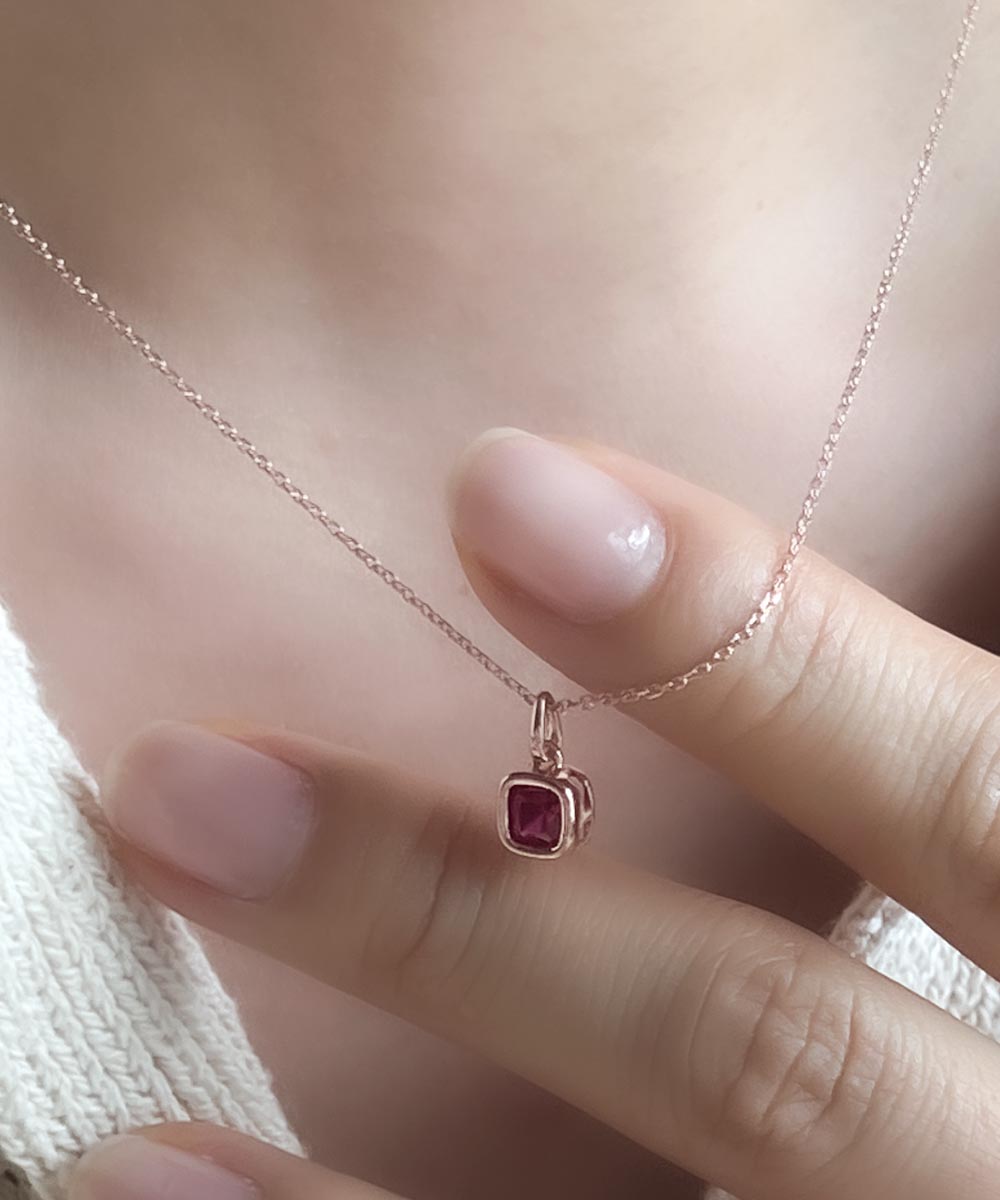 [무배] 실버925 로즈골드 사각 루비큐빅 목걸이