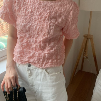[핑곤당일/SALE] liberty 리버티 버블 블라우스 링클 반팔 스판 블라 (3colors)