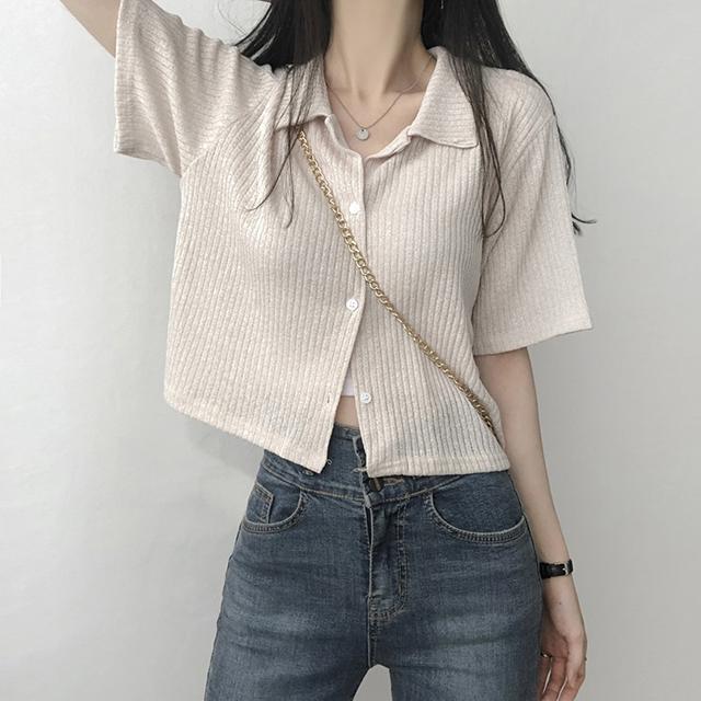 [가벼운니트재질] 골지 카라넥 반팔 가디건