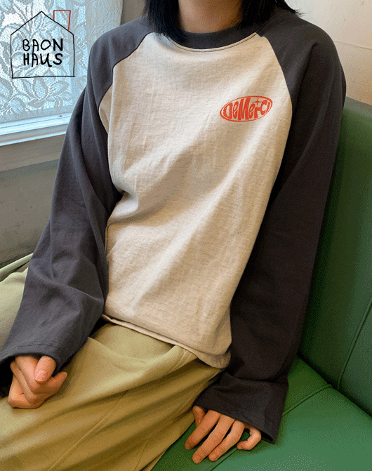 [3만장돌파][BAON] 폰치 프린팅 레글런 배색 긴팔 티 (2color)