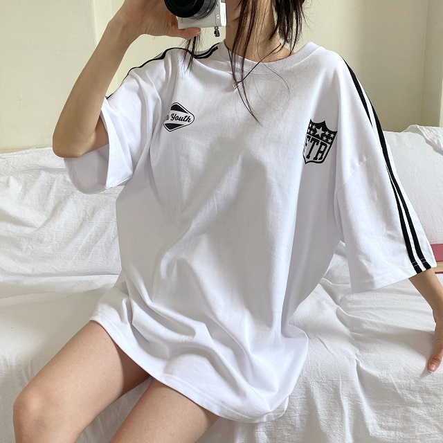 스포티 남녀공용 FTR 스타 두줄 라인 반팔
