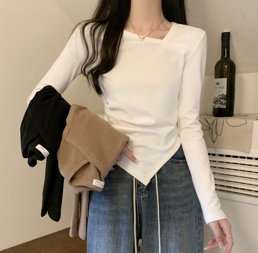 모드 언발 슬림 크롭 티셔츠
