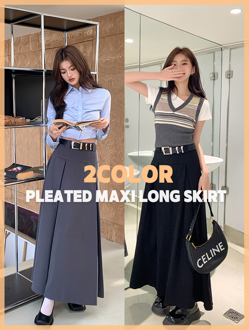 *당일발송* [3천장판매✨][S~XL/2COLOR] 사계절 하객룩 플리츠 맥시 롱 스커트 세미 정장 치마 Z-SSC 8100