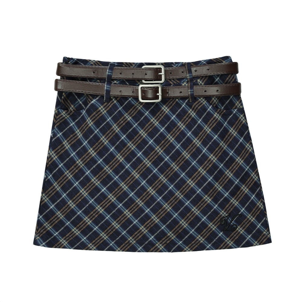 더블 벨트 체크 스커트