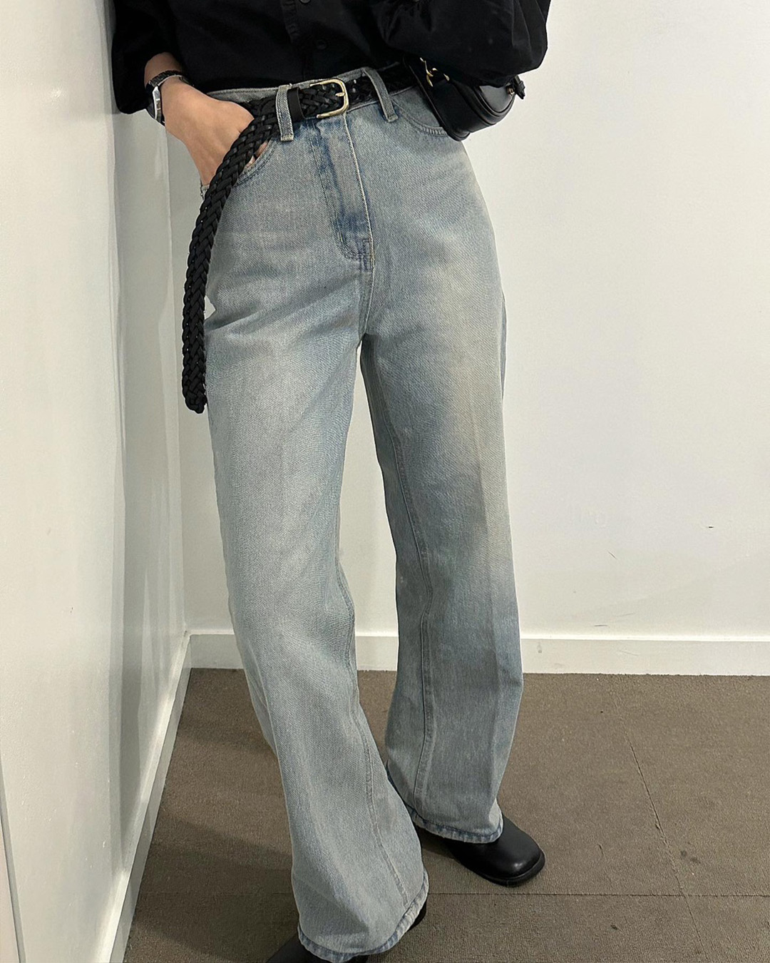 하클 여성 하이웨스트 레직기 일자 세미 와이드 부츠컷 청바지