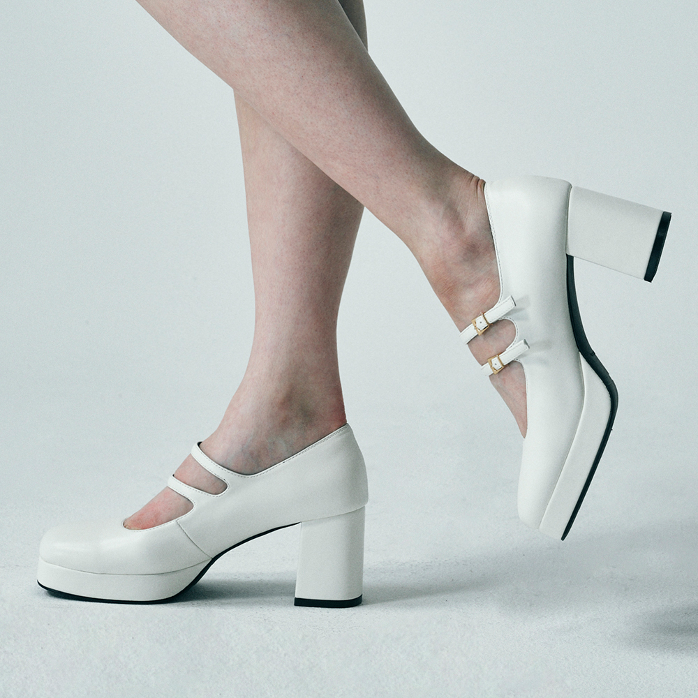 스퀘어 토 더블 스트랩 메리제인 펌프스 412331003 (7cm/3colors)