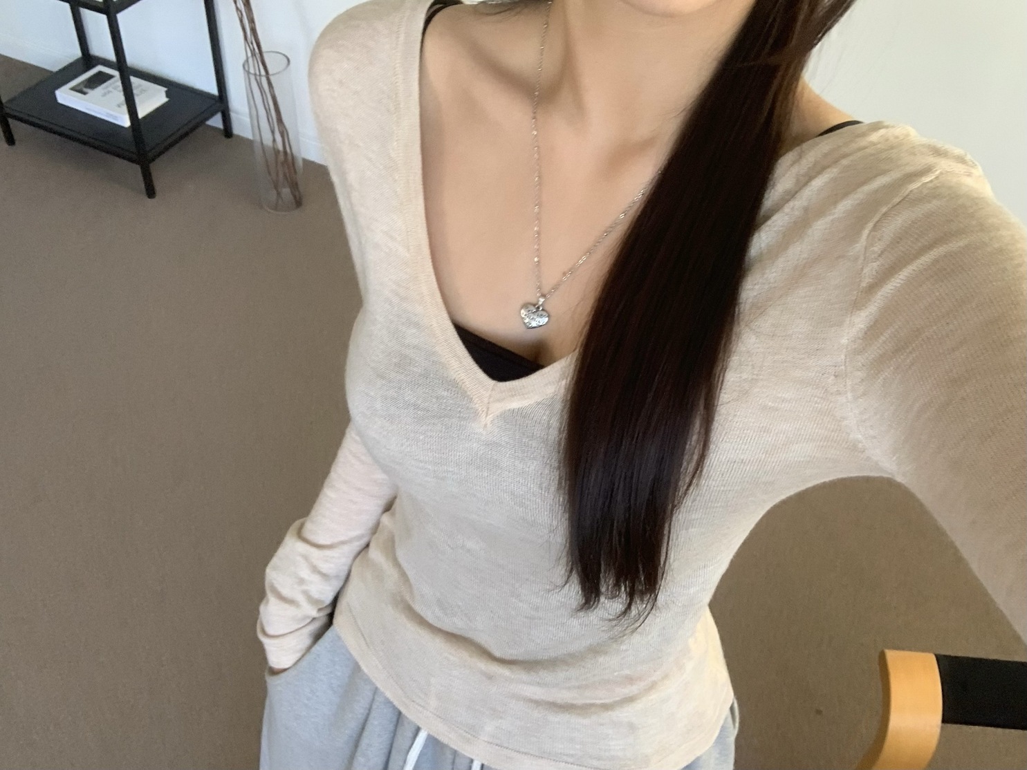 [컬러추가++/미친핏] 발렛 브이넥 시스루 니트 얇은니트 양면니트 여리핏 발레코어 (4col)