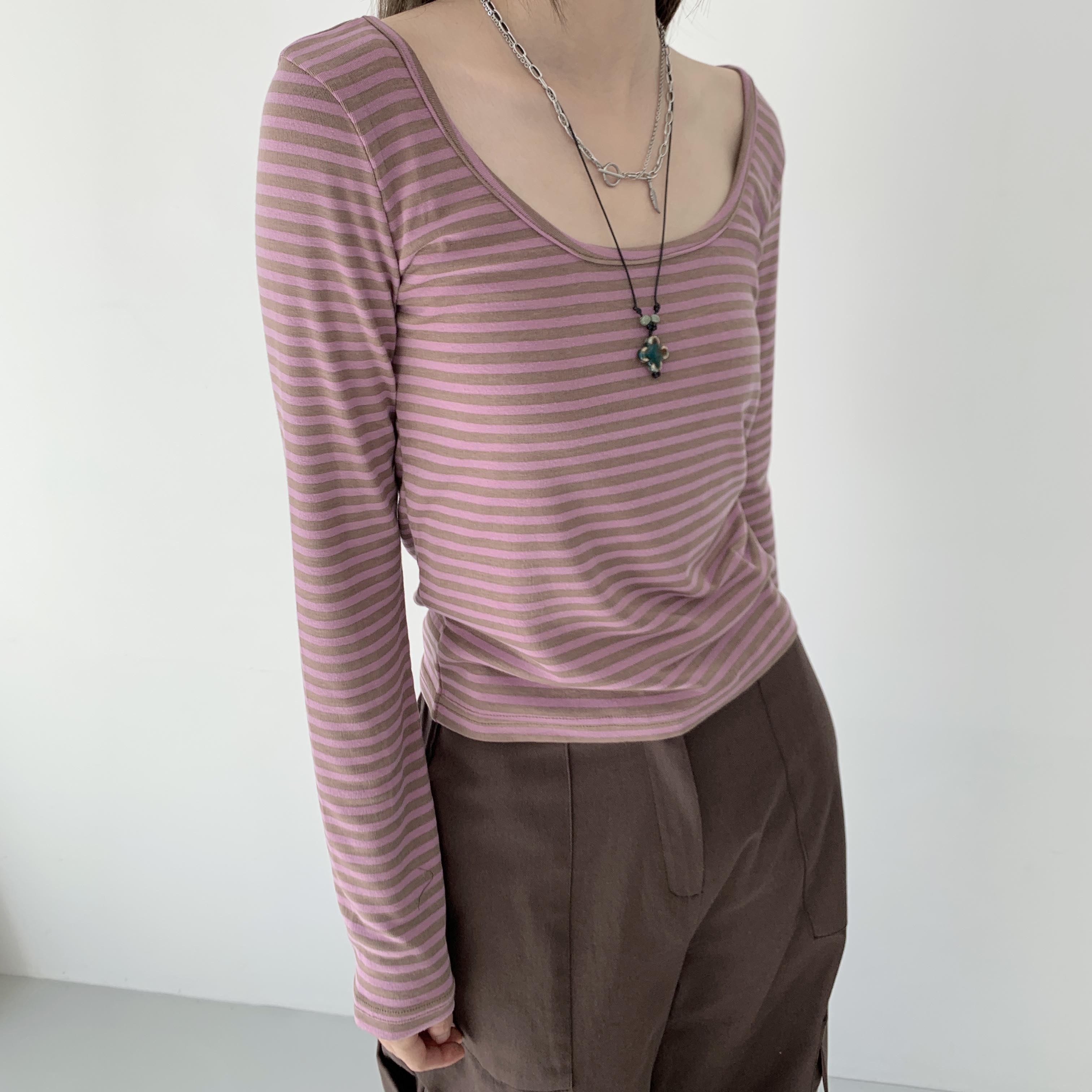 멜로 소프트 단가라 딥유넥 티셔츠 3color
