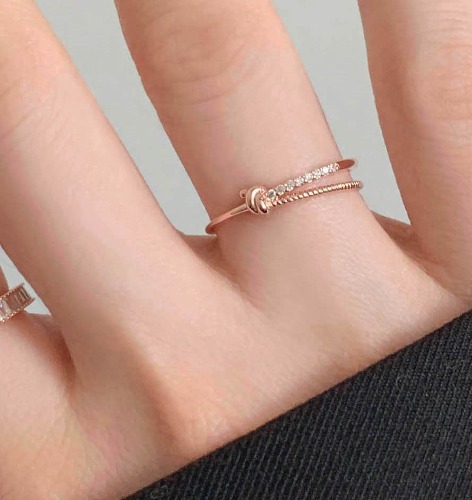 실버925 매듭 큐빅 두줄 레이어드 반지 (실버,로즈골드)