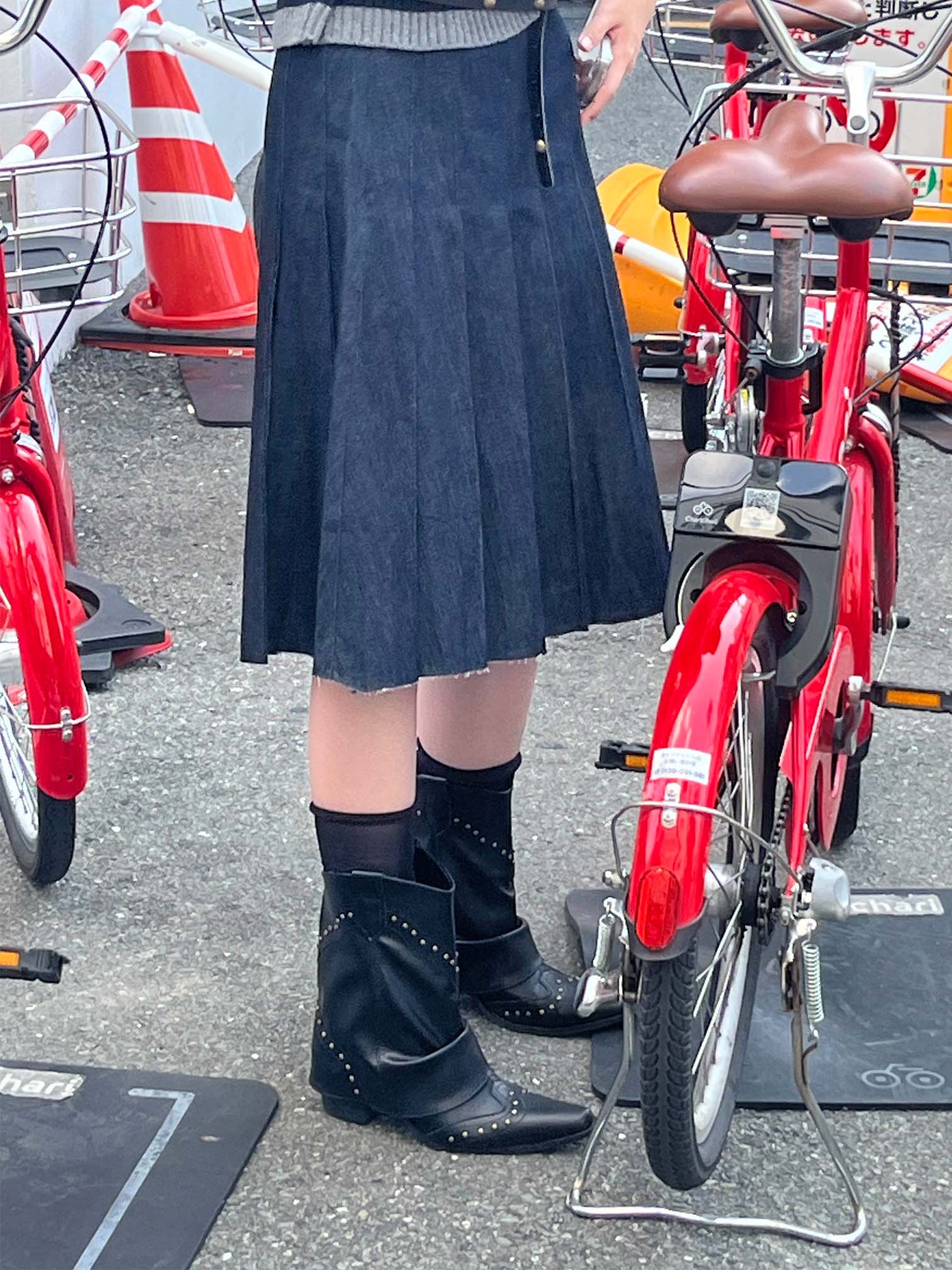 half denim pleats sk