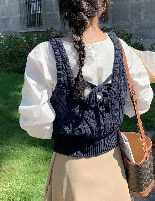 [가을🤎15%][5천장돌파][조끼/레이어드][직진배송]도로시 백 리본 케이블 니트 베스트