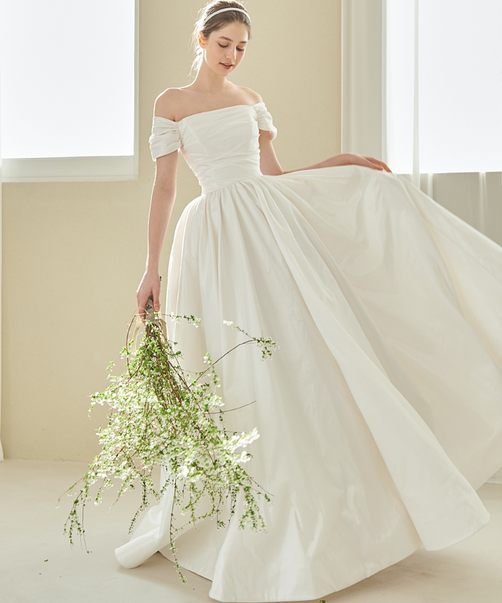 오프숄더 벨라인 웨딩드레스 셀프웨딩 스냅촬영 돌잔치 드레스