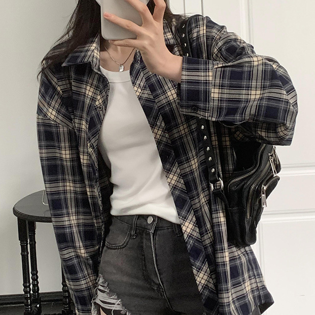 어텀체커 오버핏 체크 셔츠 남방