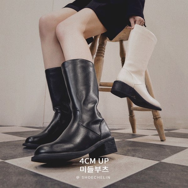 (~260) 레더 라운드 미들 옆지퍼 하프부츠 #4cm