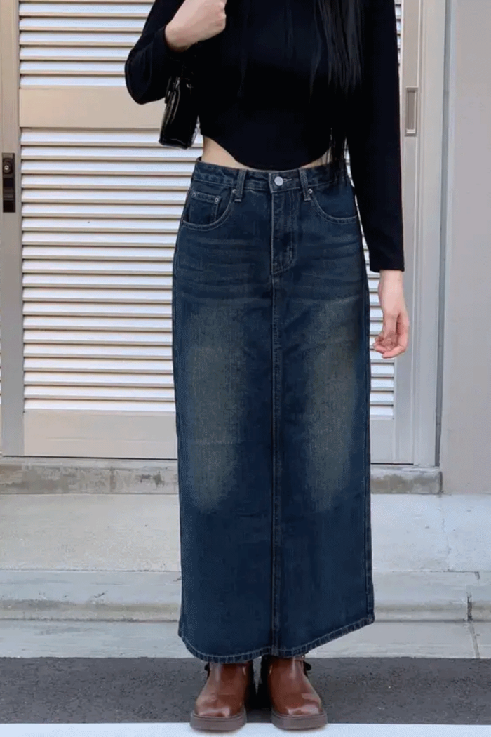 [주문폭주] 빈티지 데님 뒷트임 롱스커트
