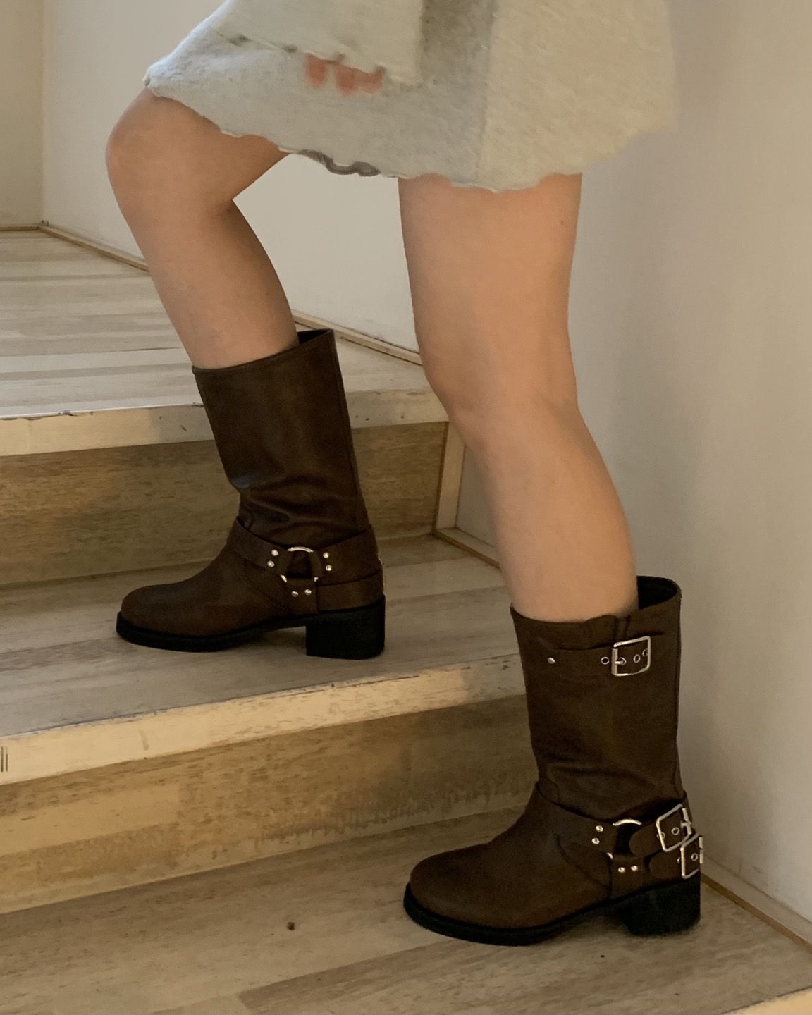 (오늘까지!할인)버클 바이커 미들부츠(2color)