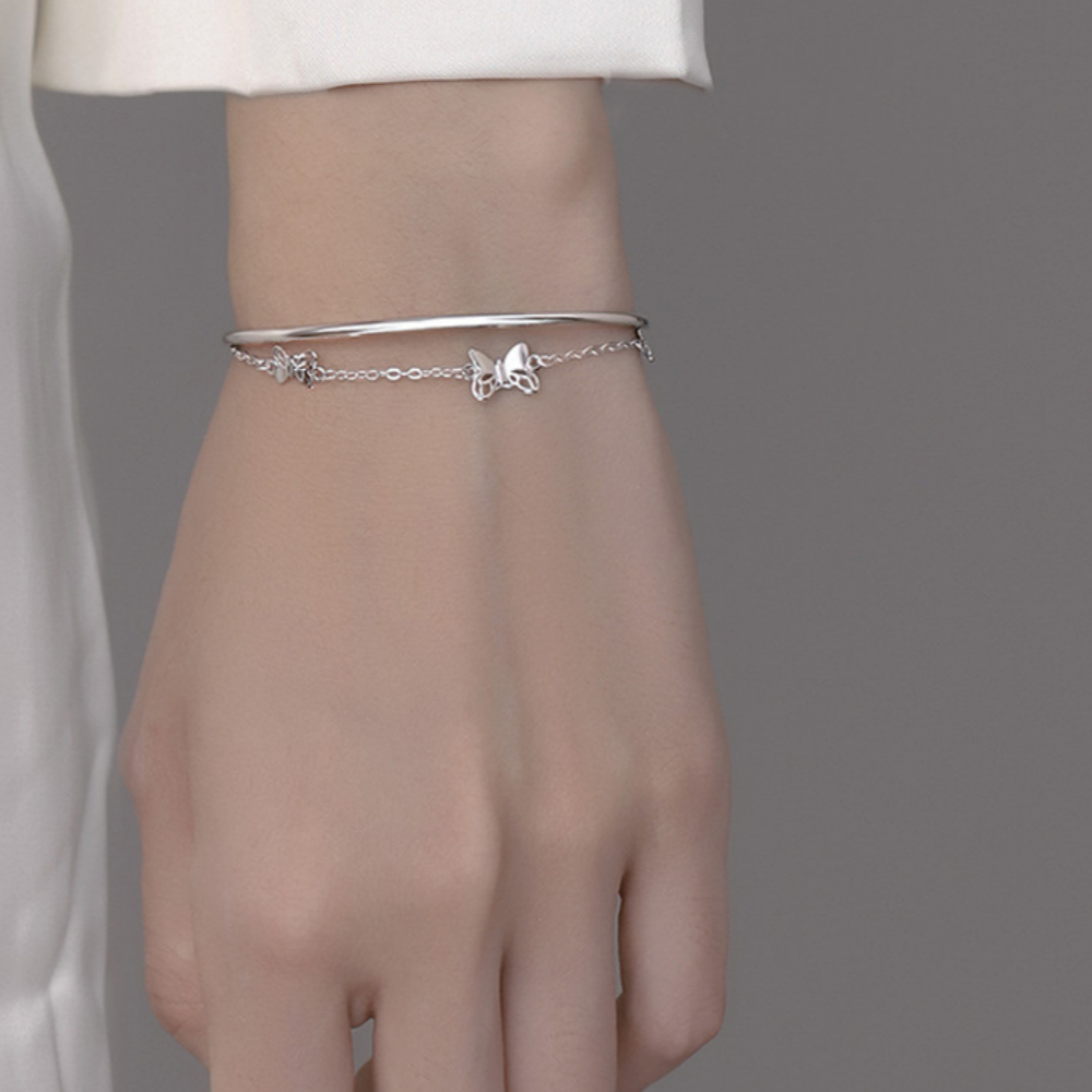 [당일출고🚚] 925 실버 두줄 나비 체인 팔찌