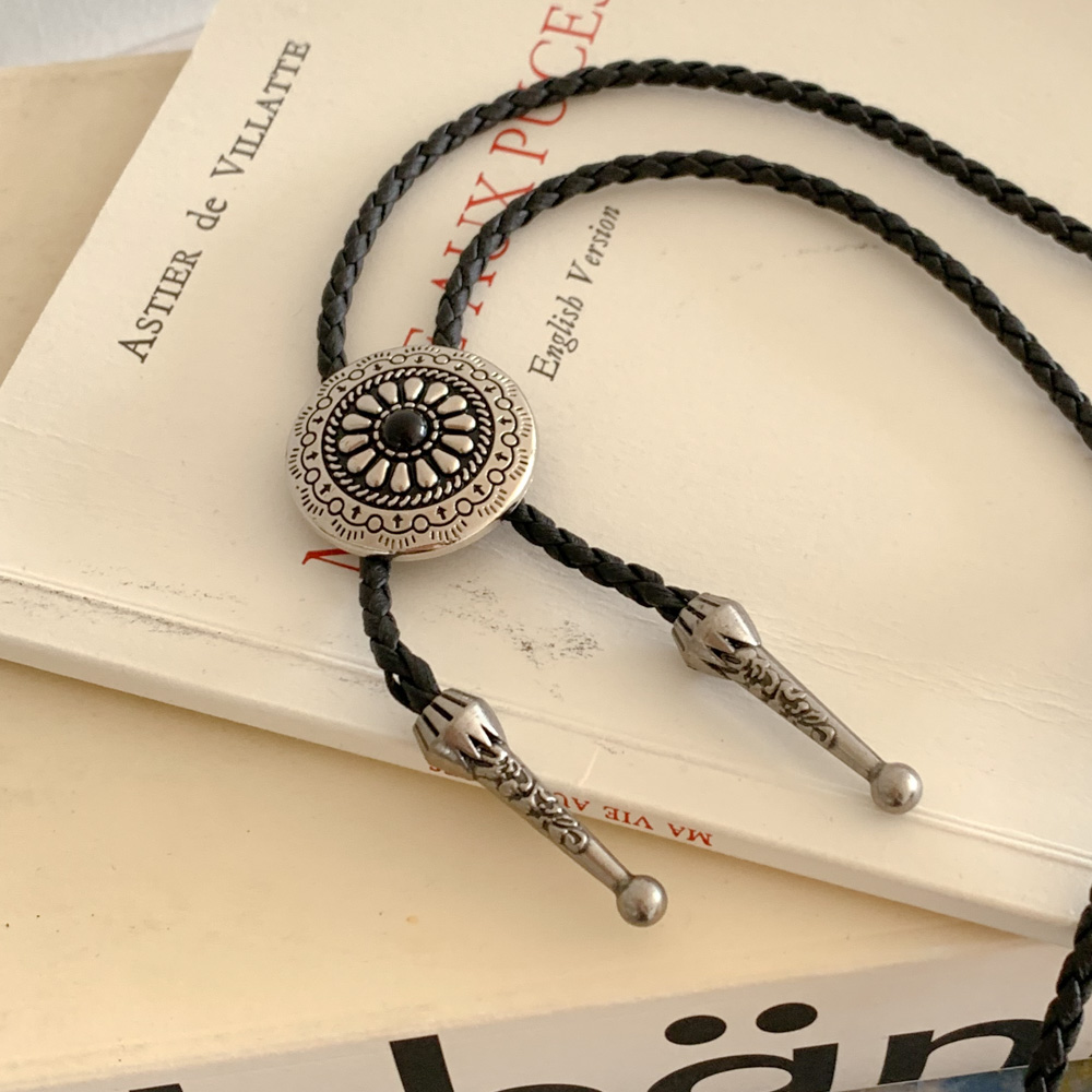 [빈티지/유니크] 오리엔탈 썬플라워 레더 인조가죽 롱 팬던트 볼로타이 목걸이
