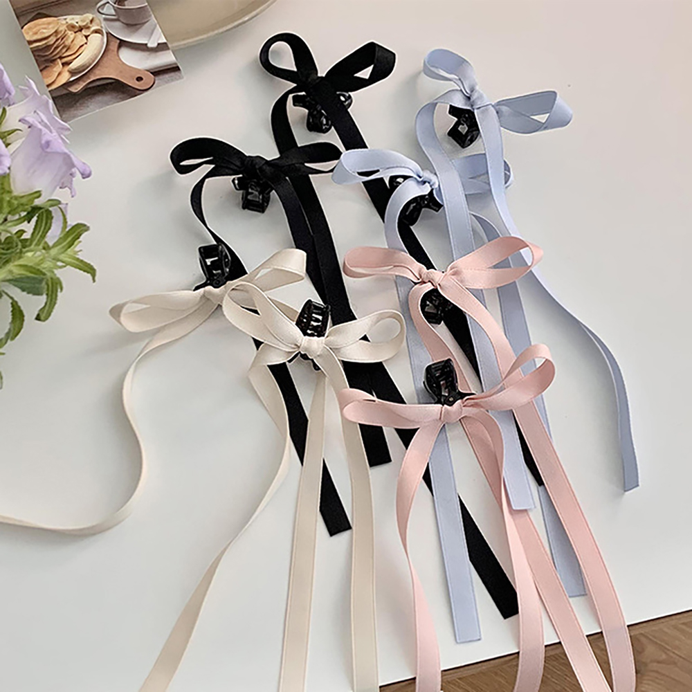 [2개드려요♥/무배!] 플레어 포인트 새틴 롱 리본 헤어 미니 집게핀 4컬러