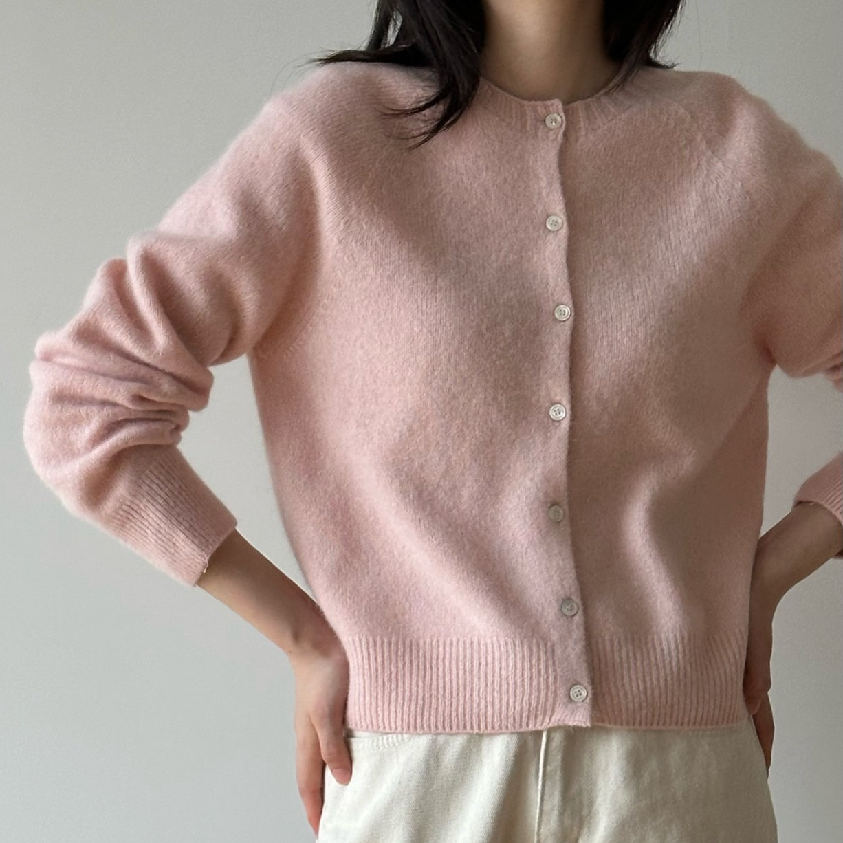 [핑크당일]여성 핑크 캐시미어 가디건 회색 알파카 홀가 앙고라 니트 가디건 숏 라운드 울 가디건