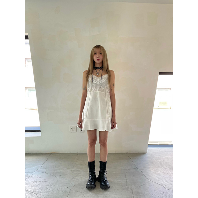 Juliet rose lace A line flared mini slip OPS / 즐리엣 로즈 레이스 A라인 플레어 미니 니시 원피스