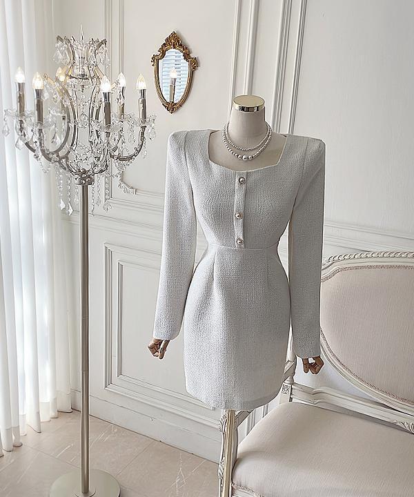 르완 미니 원피스 / 결혼식 하객룩 행사룩 데이트룩 파티룩 브라이덜샤워 돌잔치원피스 셀프웨딩 웨딩촬영 연말모임룩 2부드레스 상견례룩 트위드원피스 겨울원피스