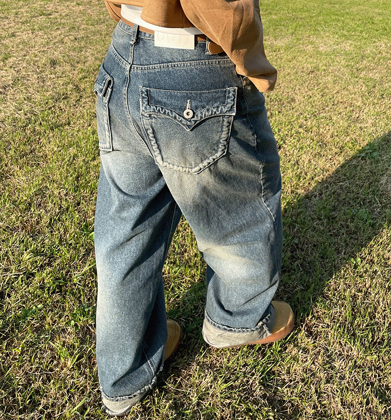 [누적판매 1만장] ootj 로프 워싱 와이드 데님 팬츠
