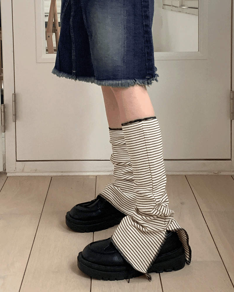 펄더 스트라이프 피치 기모 트임 롱 레그 워머