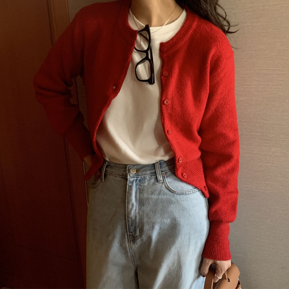 [단독/레드가디건/봄가디건] 하이디 라운드넥 기본 봄 가을 간절기 니트 가디건