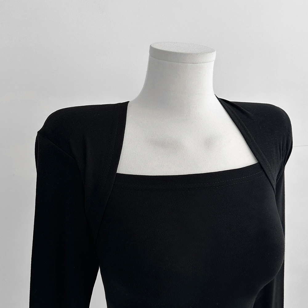 💥8천장 돌파🏆[made] 주문폭주💘스퀘어넥 볼레로 슬림 긴팔 티셔츠 이너티 긴팔