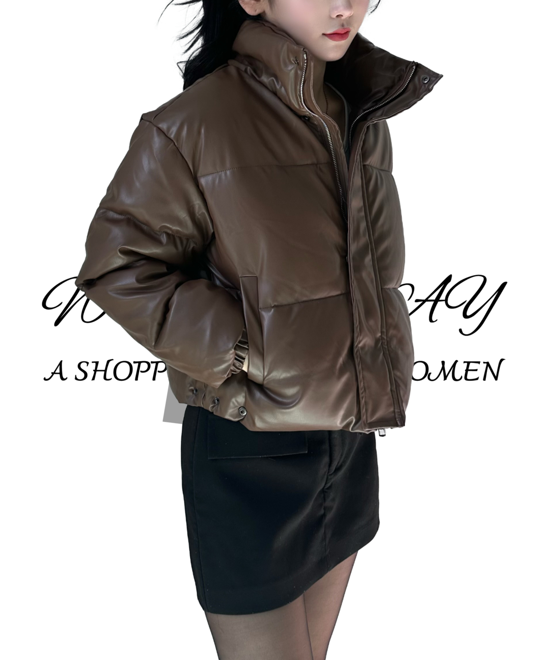 !!당일출고!! 완전무장 레더 데일리 크롭 숏패딩 패딩 점퍼 / 블랙, 브라운