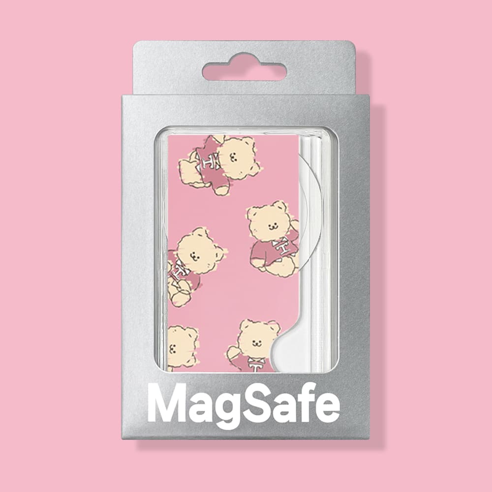 (초자력 맥세이프 카드포켓) 곰찌 스케치 핑크 . 마그네틱 자석 교통 카드 수납 명함 포토 여행 선물 커플 우정 홀더 지갑 포켓 슬롯 탈부착 아이폰 15 14 13 12 11 프로 맥스 미니