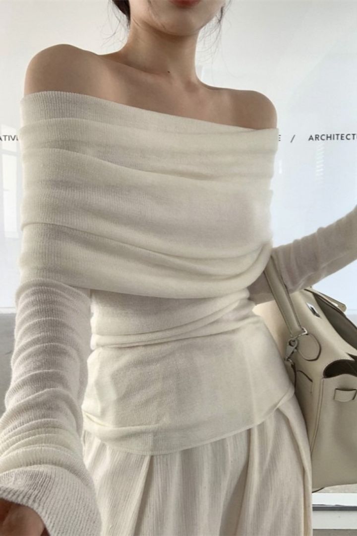 이비아 오프숄더 긴팔 롱슬리브 니트 스웨터