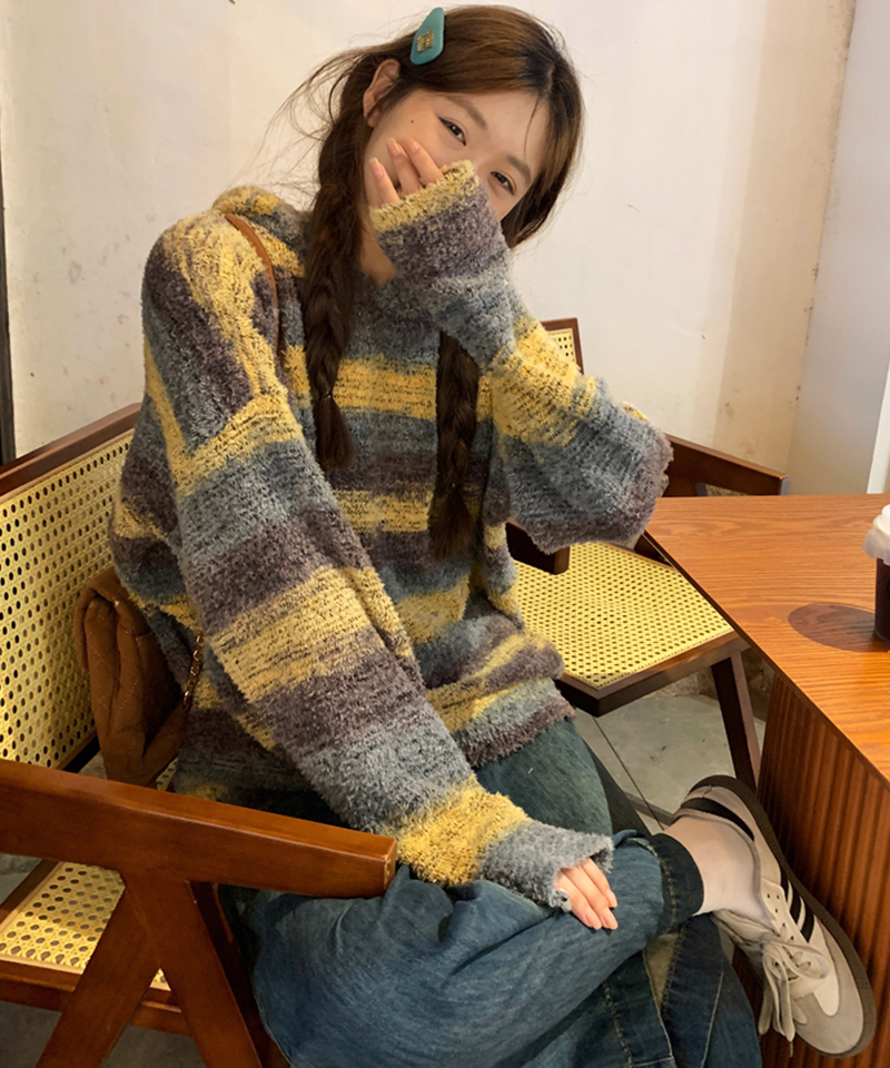 [오늘출발🚚] 니드 스트라이프 부클 후드 니트