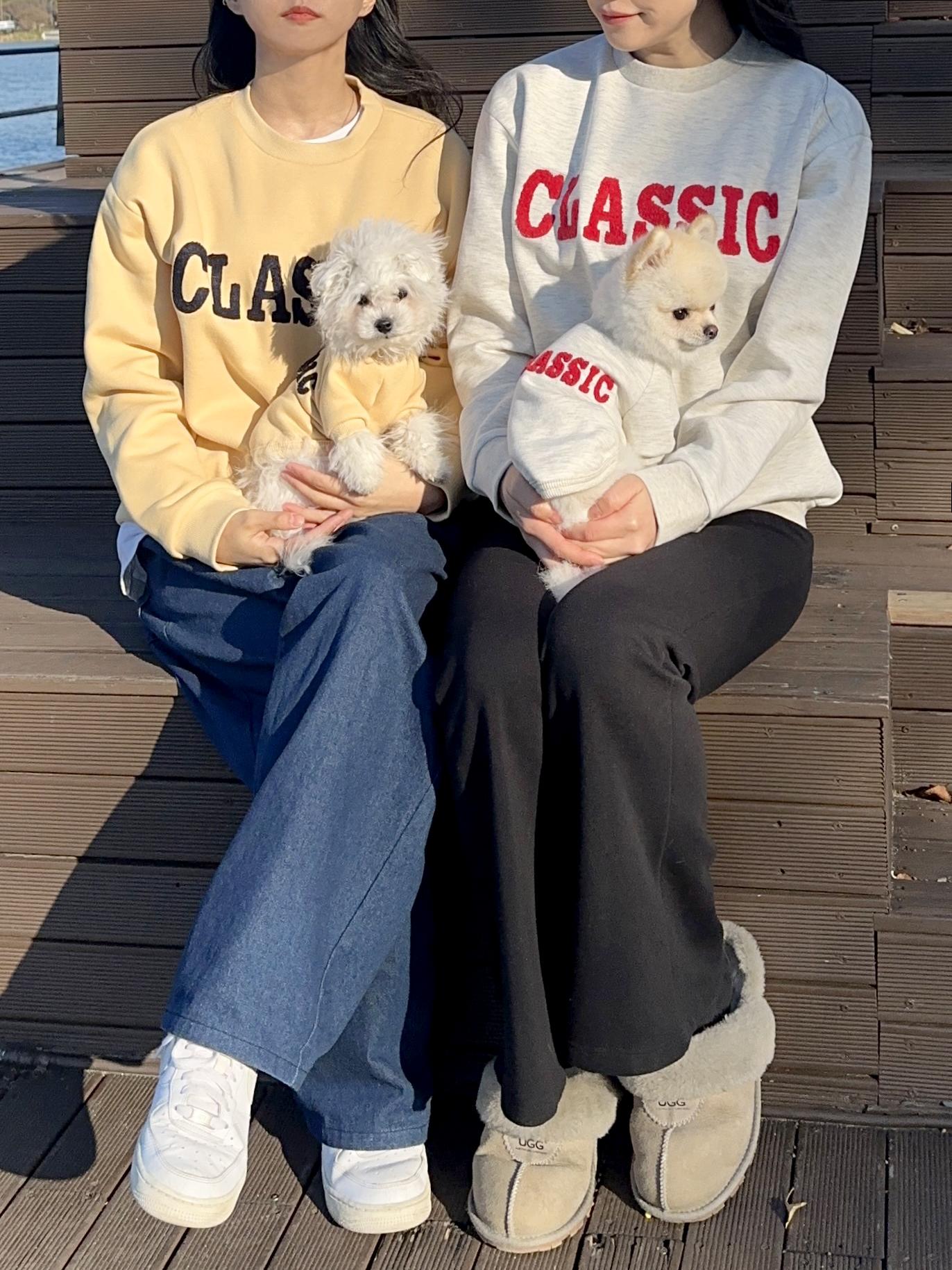 (SET상품) 코튼볼 클래식 부클 기모맨투맨 S - 2XL 강아지커플룩 댕플룩 개플룩