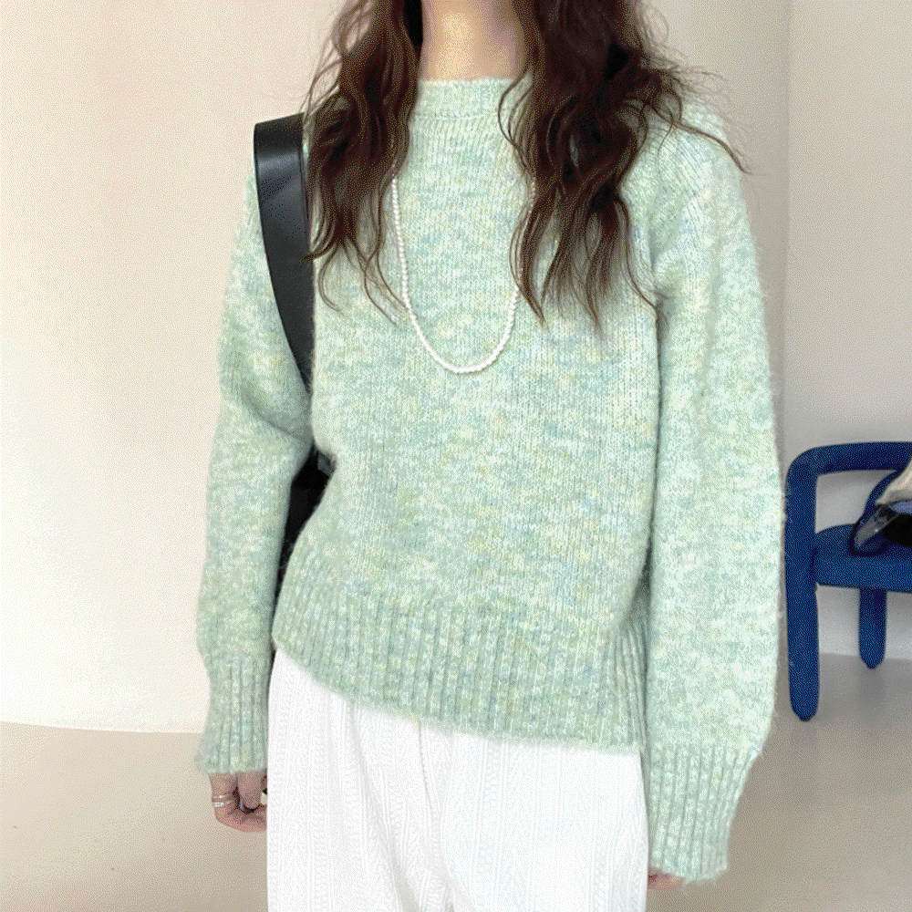 [사랑스런 색감] 솜사탕 보카시 울 혼방 파스텔 라운드넥 니트