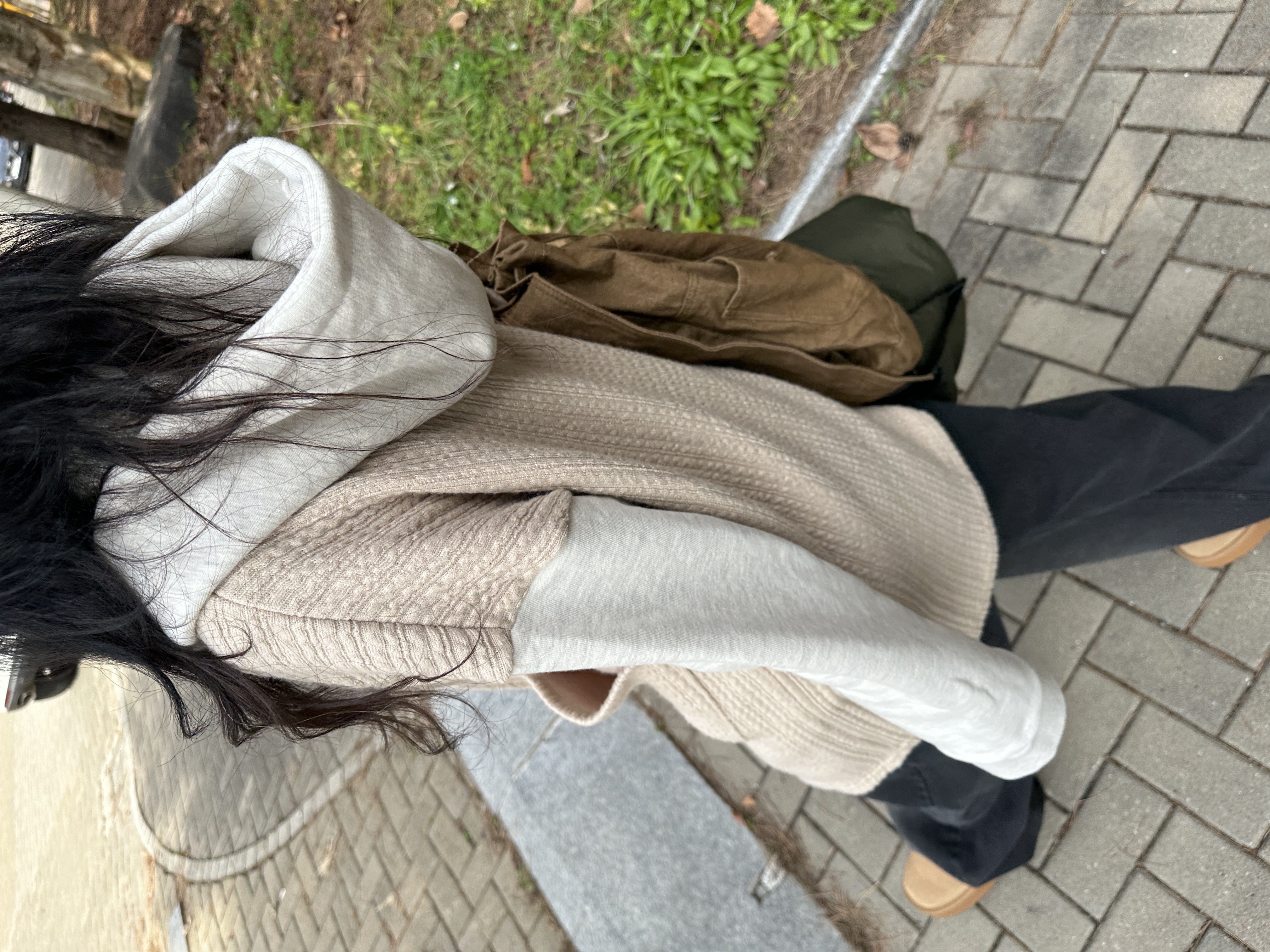 Twisted eyelet hoodie / 꽈배기 배색 아일렛 후드