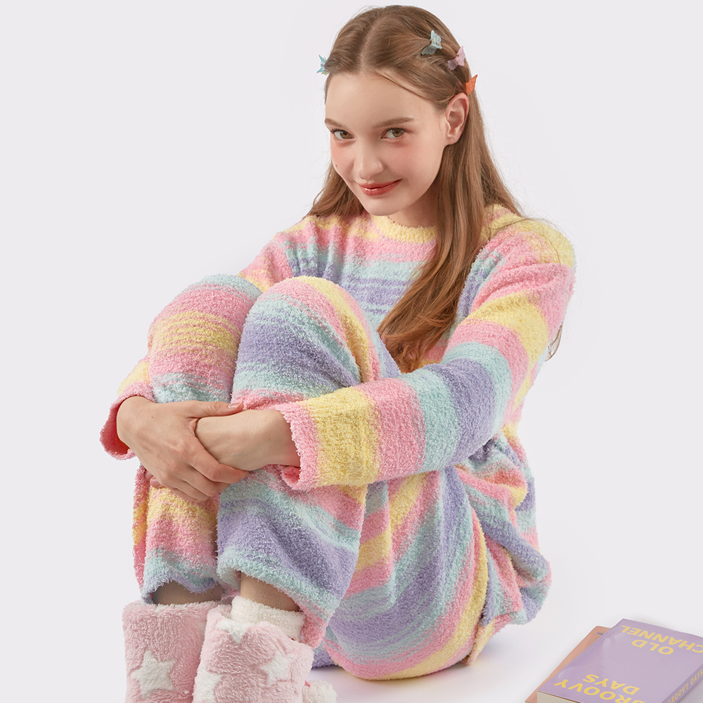 캔디 스트라이프 후리스 수면 잠옷