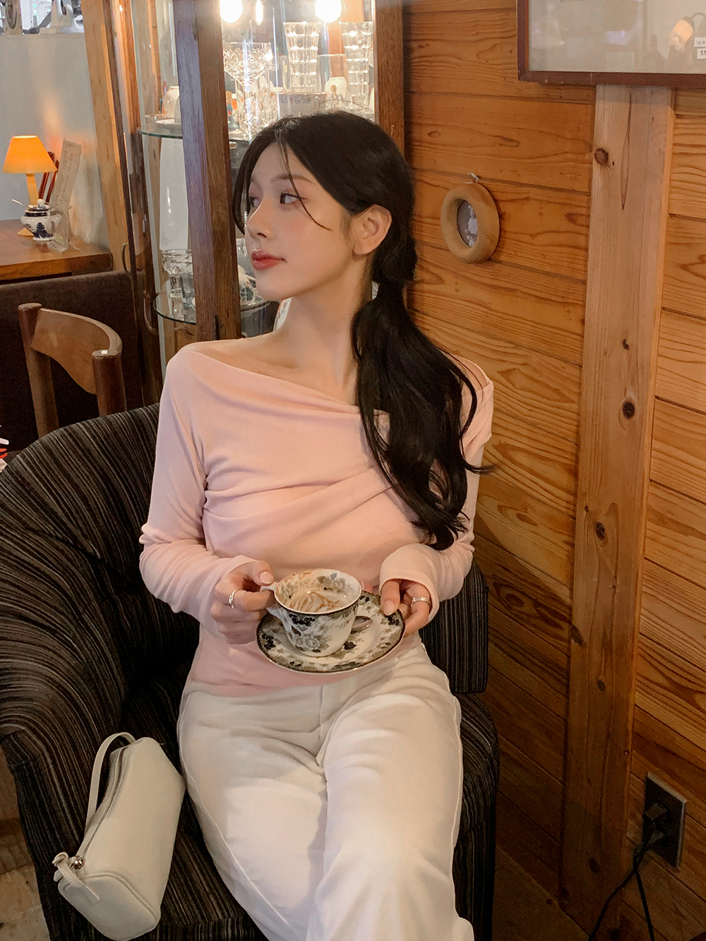 [핑크컬러추가!][하객룩/2.6만장돌파][MADE]로제 보트넥 오프숄더 티셔츠 (7color)
