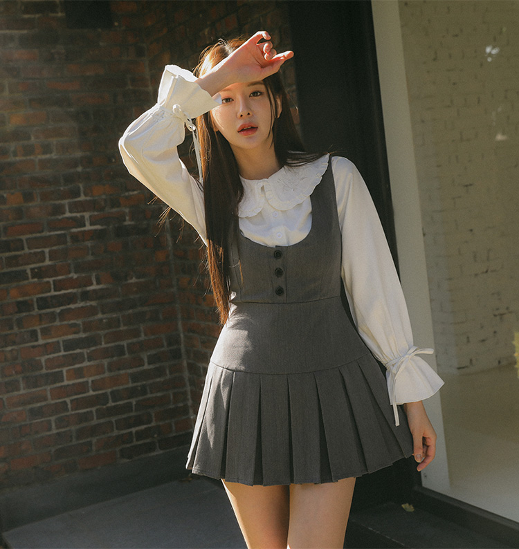 플리츠 스커트 슬림 베스트 원피스 그레이