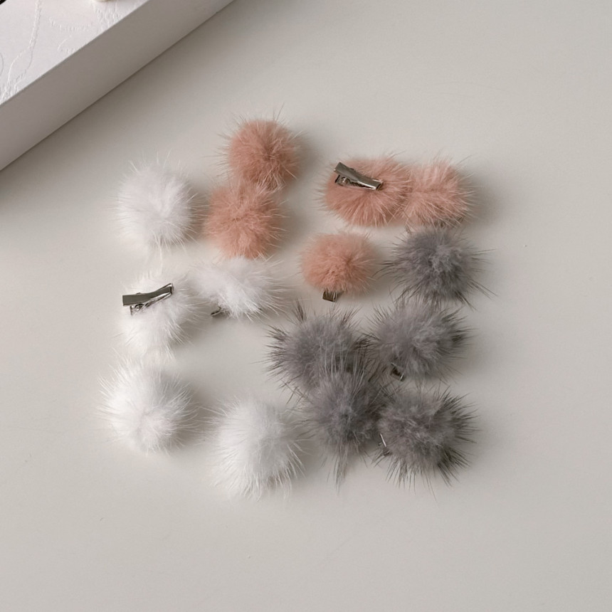 [6개세트] 리얼 밍크 퐁퐁 퍼 헤어 포인트 연말룩 파티룩 옆머리핀 미니 집게핀 세트 3color